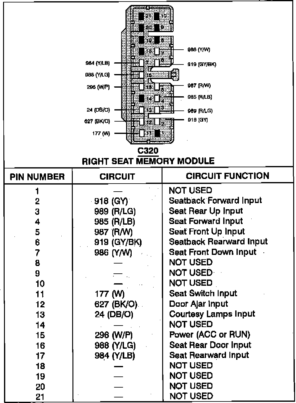 Right Seat Memory Module: