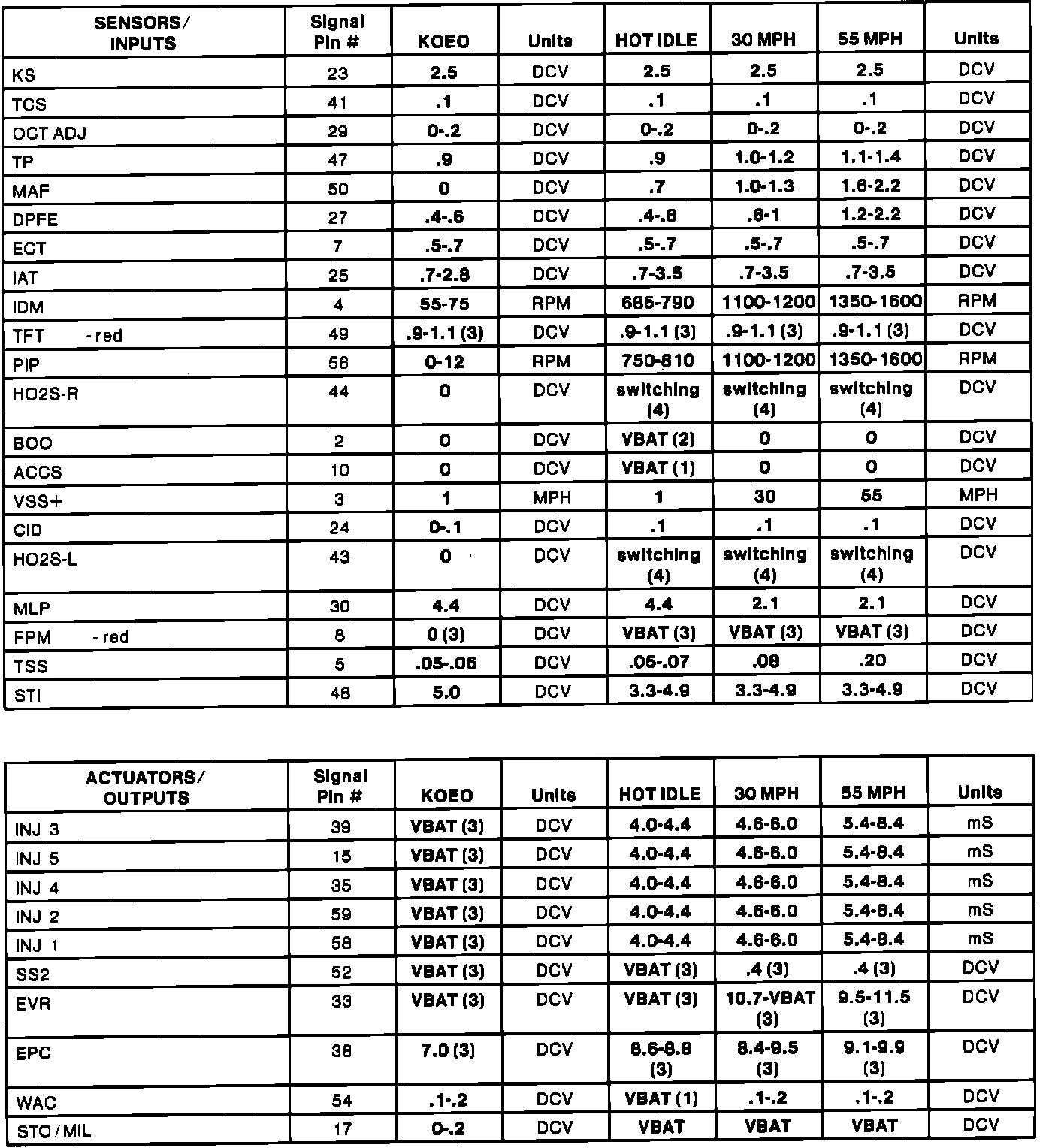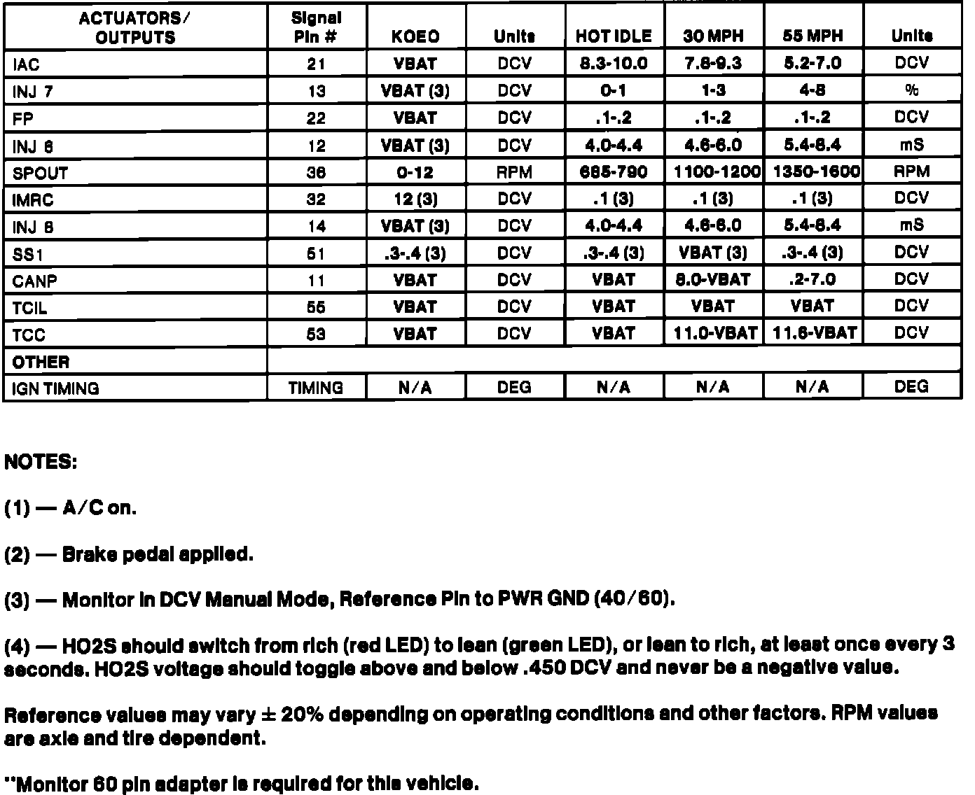 Some Electronic Engine Controls (EEC) devices such as Intake Air Temperature (IAT), Engine Coolant Temperature (ECT) are temperature dependent and values may vary. Other Values such as Idle Air Control (IAC) and Injector Pulsewidth (INJ) are calibration dependent and may vary also.