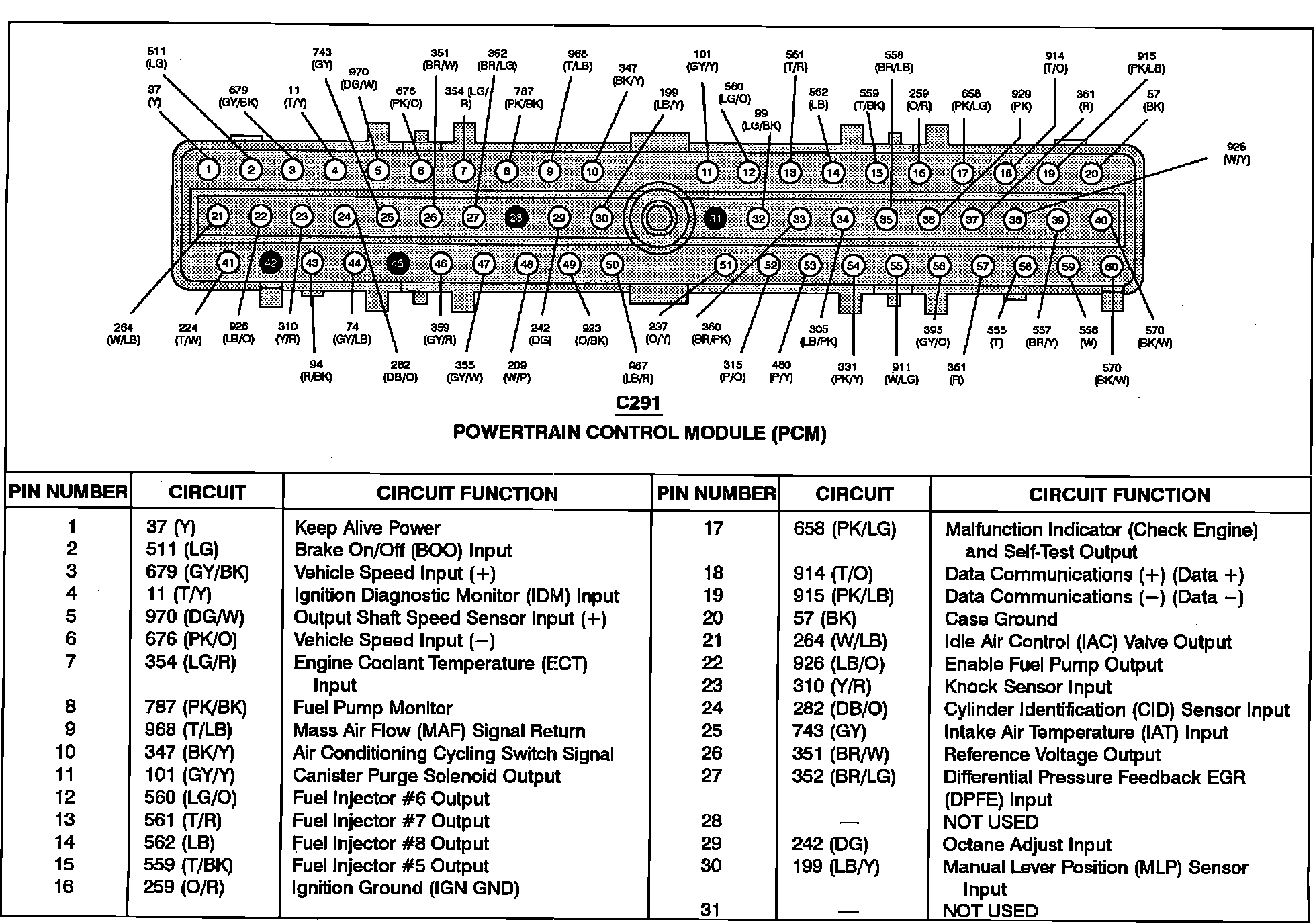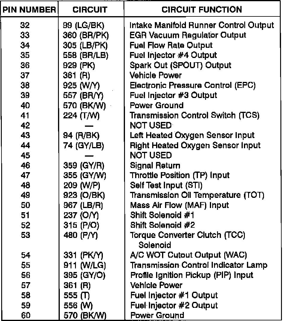 Powertrain Control Module (PCM) Pinout Chart: