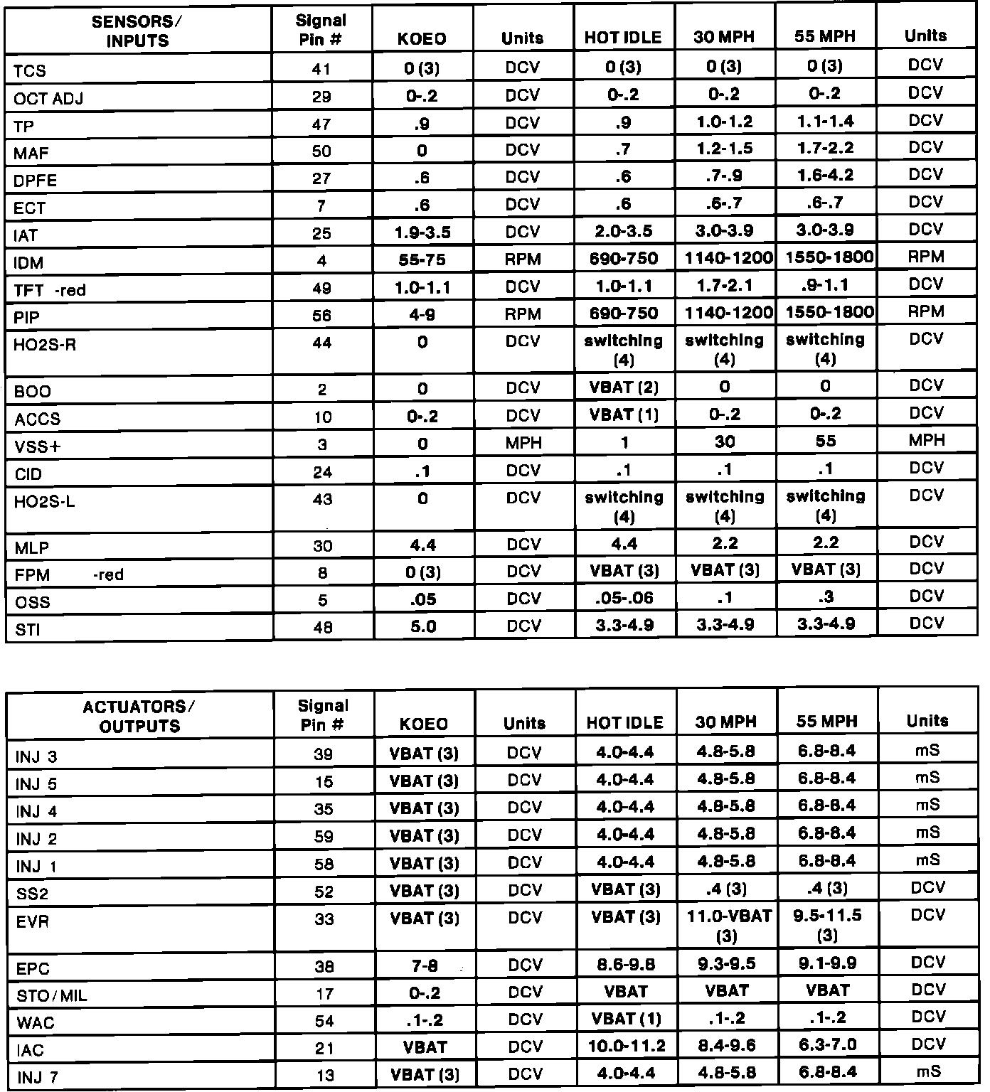 Some Electronic Engine Controls (EEC) devices such as Intake Air Temperature (IAT), Engine Coolant Temperature (ECT) are temperature dependent and values may vary. Other Values such as Idle Air Control (IAC) and Injector Pulsewidth (INJ) are calibration dependent and may vary also.