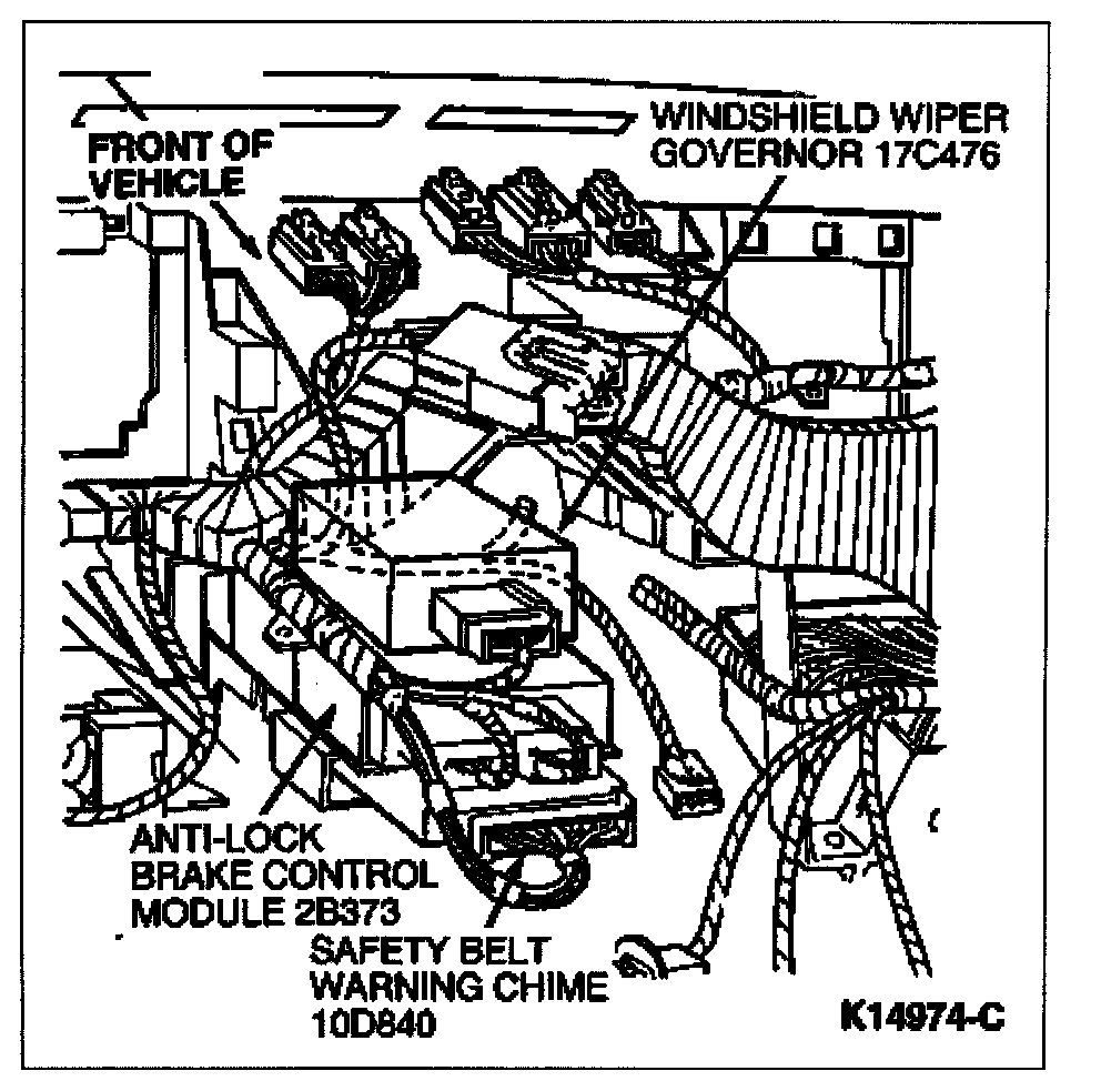 4. Disconnect the multiple connector at main wiring loom. Remove the windshield wiper governor from the bracket.