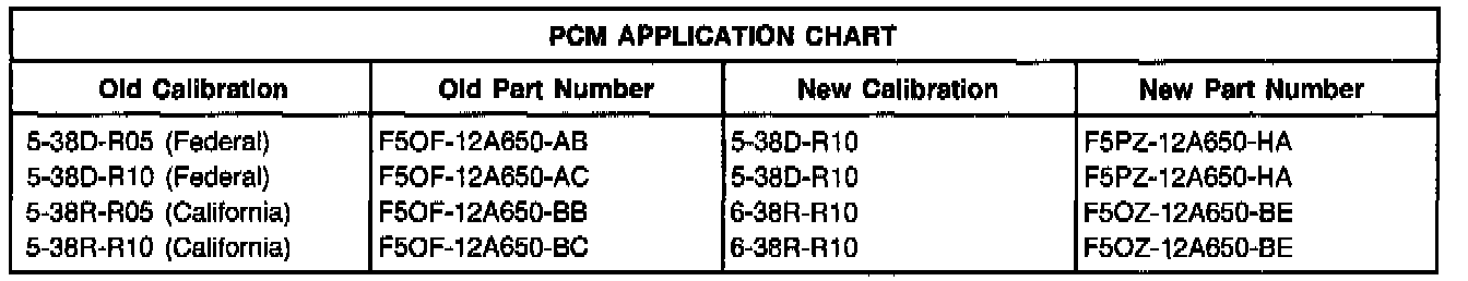 2. Reprogram the PCM using the latest Service level for 1995 model (Federal) year calibrations. For green states (California), use the 1996 model year calibrations.