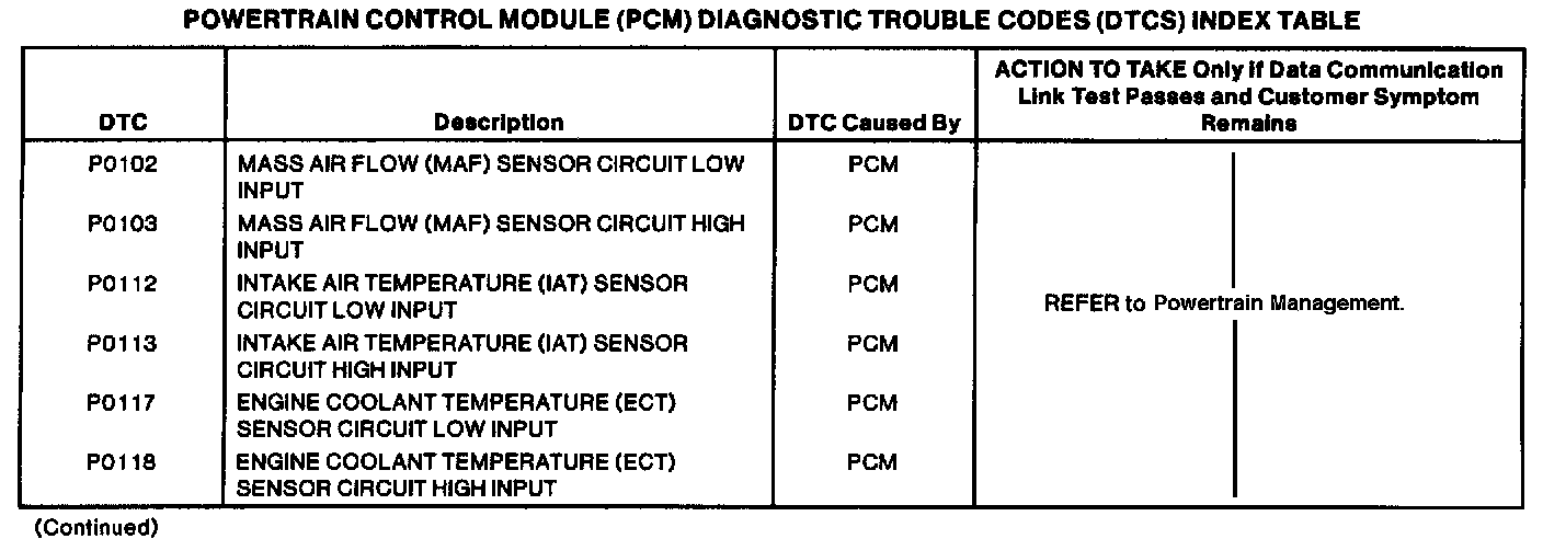 Powertrain Control Module DTC Chart Part 4 Of 6: