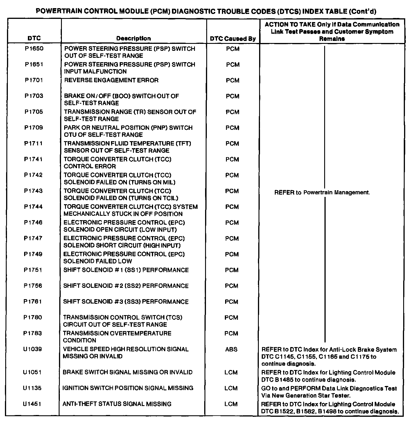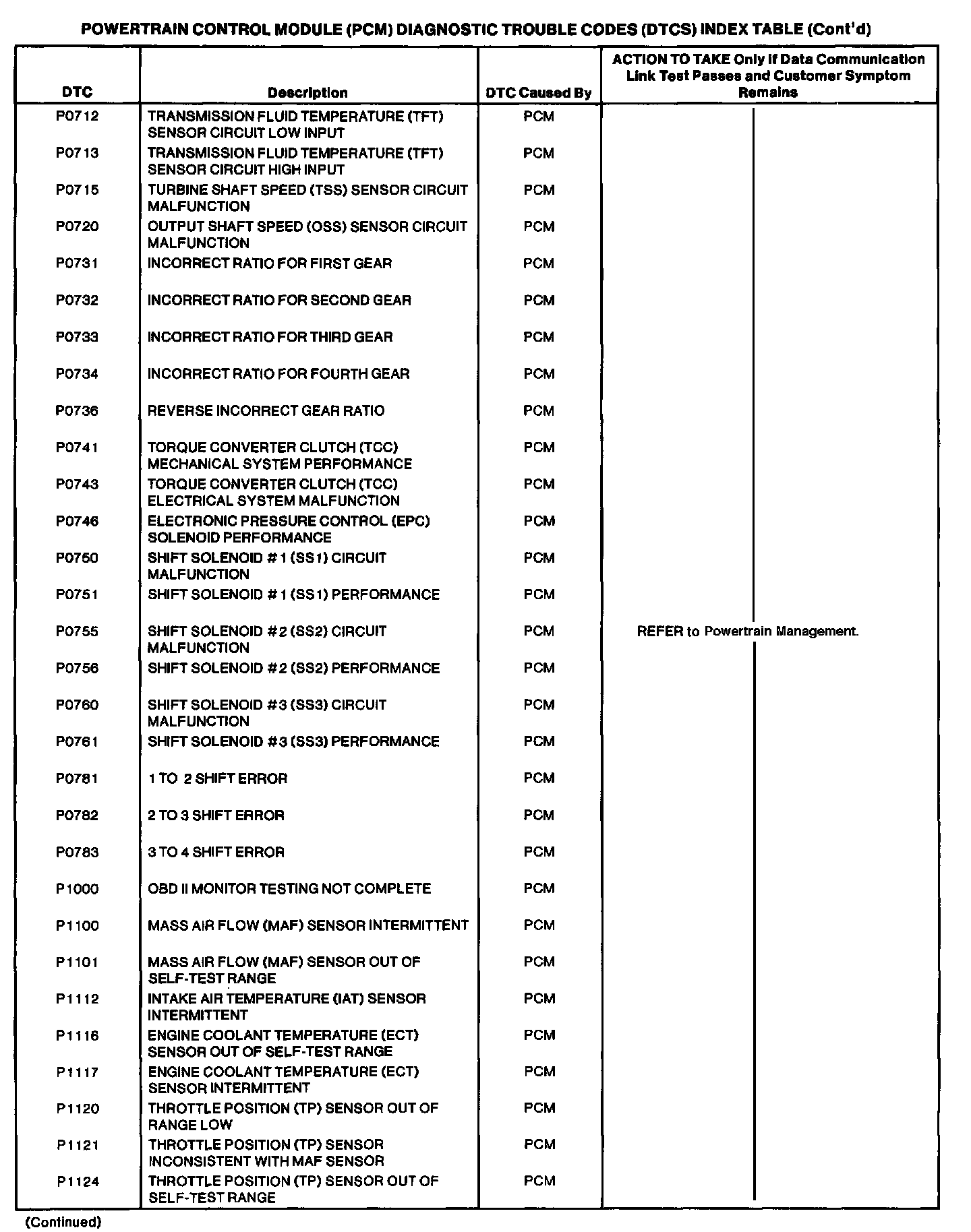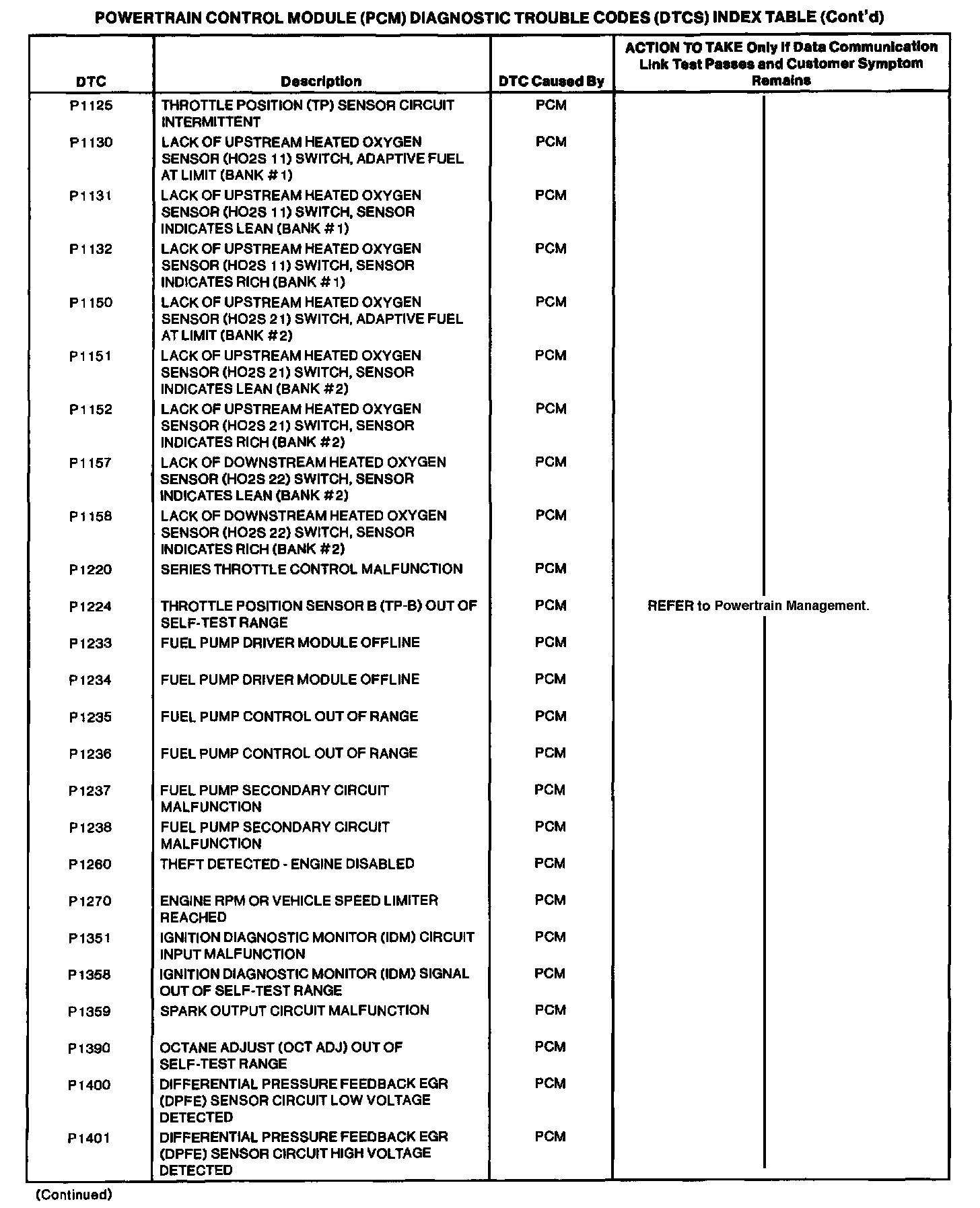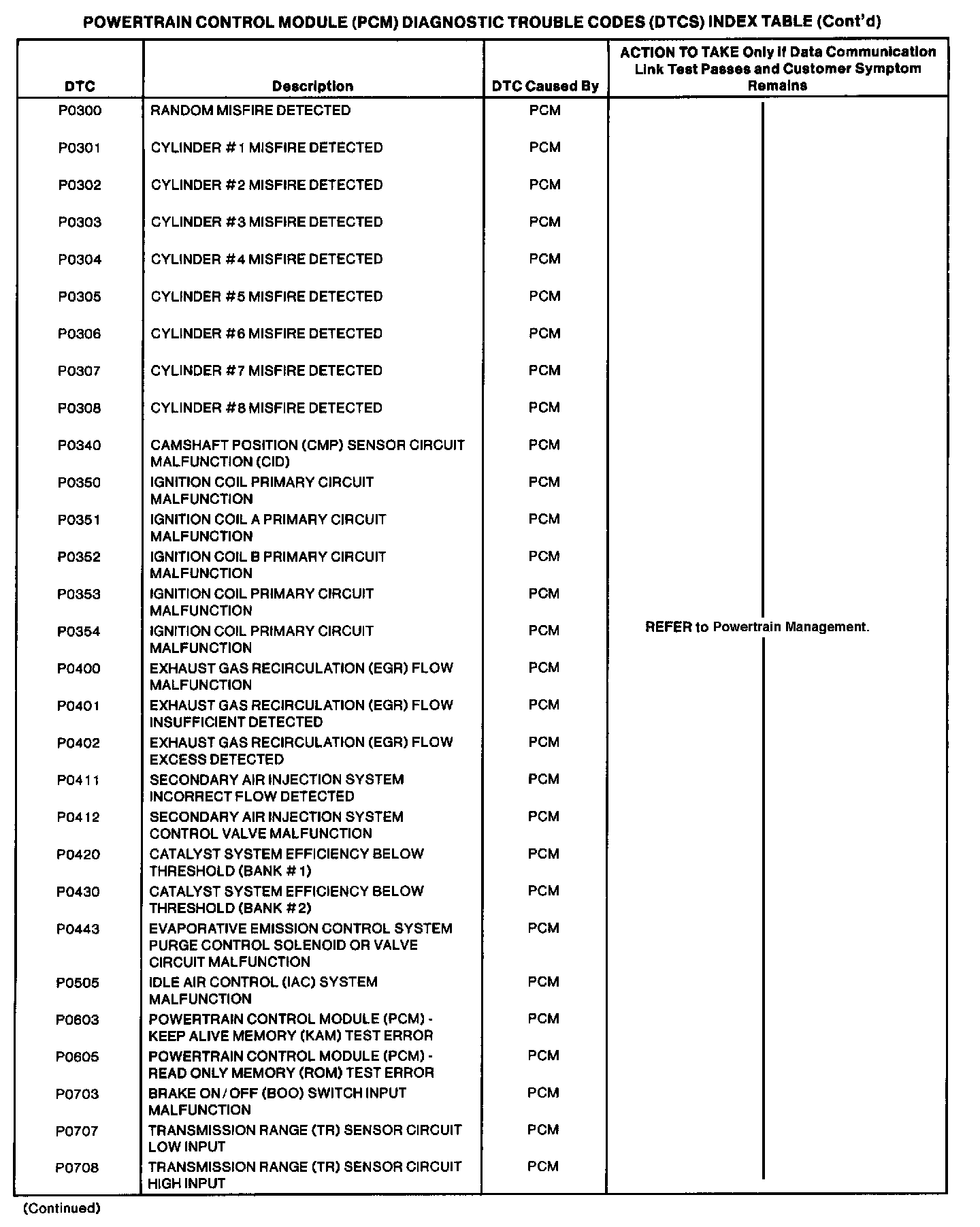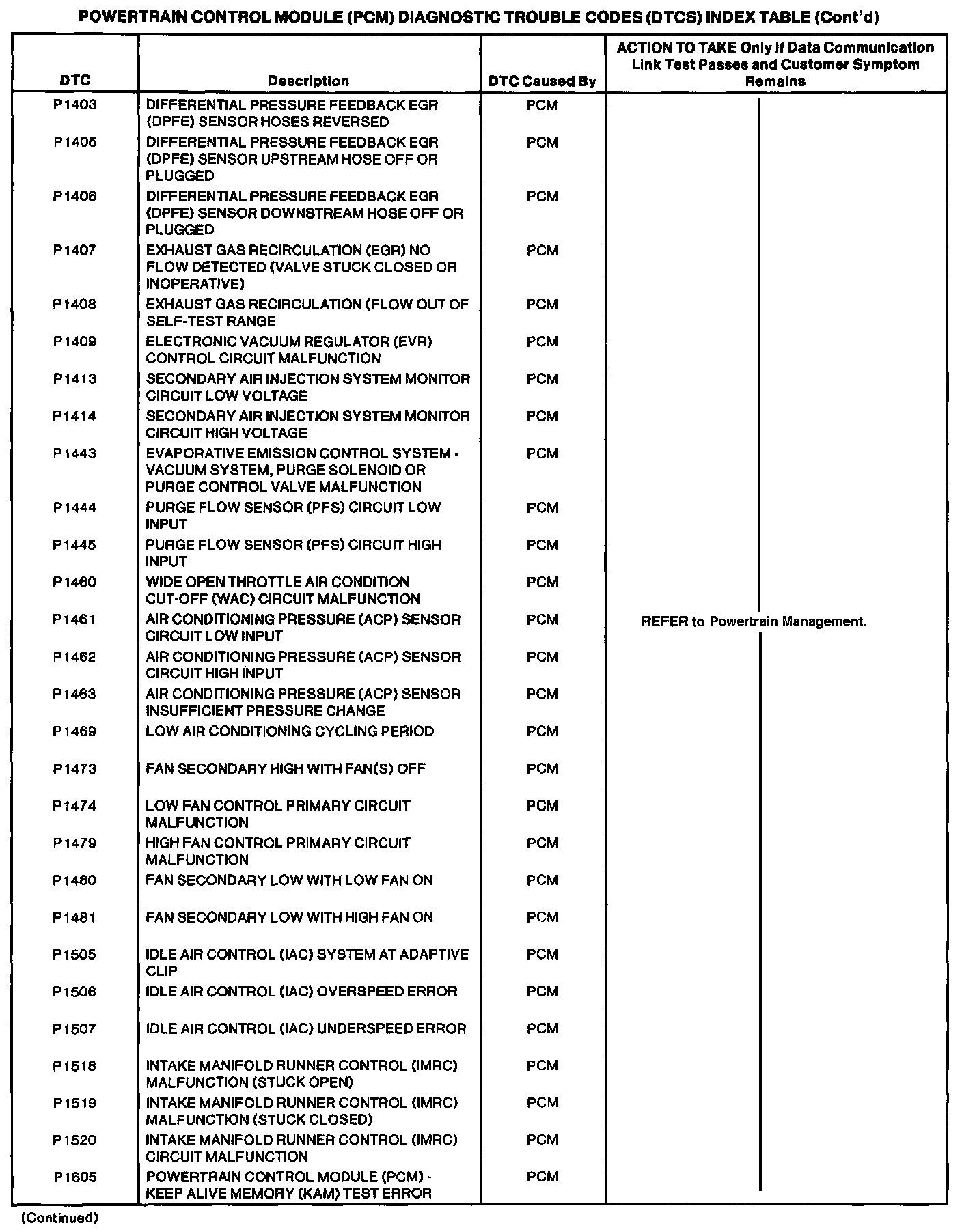 Powertrain Control Module DTC Chart Part 3 Of 6: