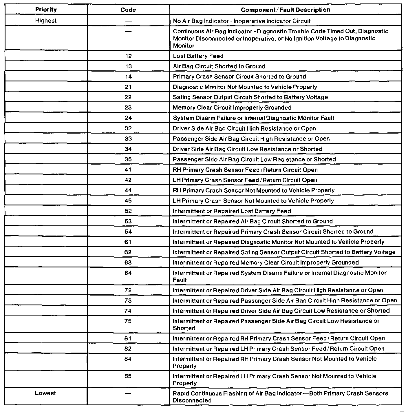 - The air bag diagnostic monitor incorporates Non Volatile Random Access Memory (NVRAM) to store diagnostic trouble codes and retain them indefinitely. The air bag diagnostic monitor will always flash the highest priority diagnostic trouble code stored in NVRAM. Diagnostic trouble codes may be cleared from the air bag diagnostic monitor after the fault conditions are serviced.