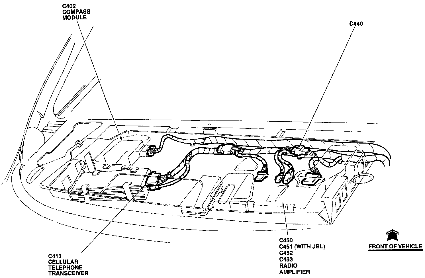 The Compass Module is located under left side of package tray.