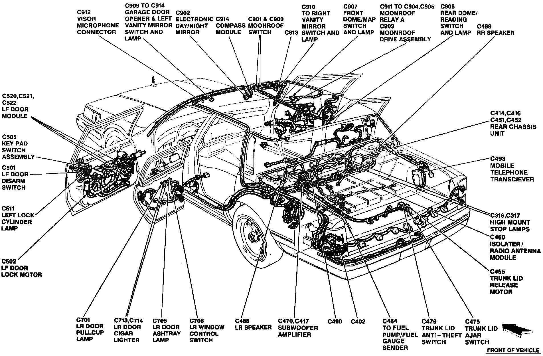 The Left Front Door Module is located in the LF door, by "A" pillar.
