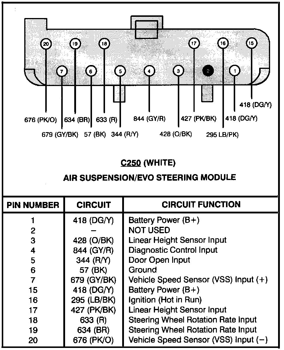 Air Suspension/Electronic Variable Orifice Steering Module (C250):