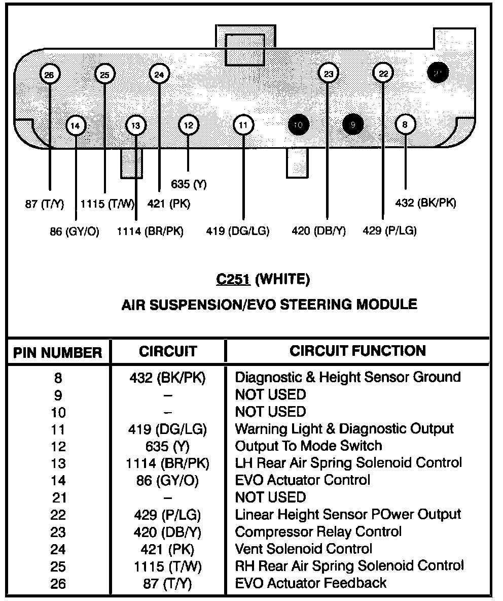 Air Suspension/Electronic Variable Orifice Steering Module (C251):