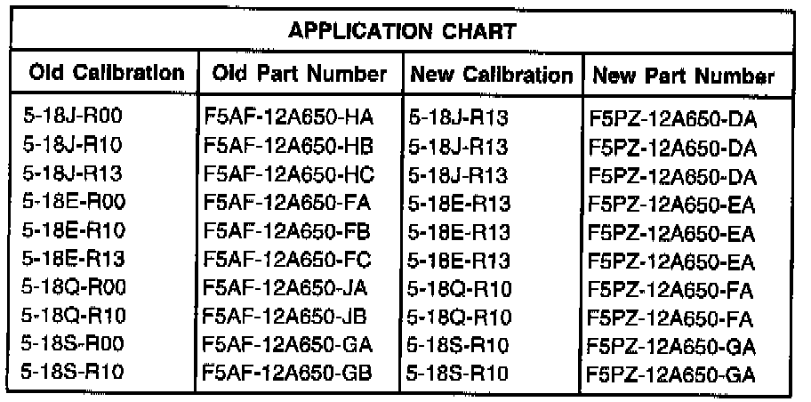 Reprogram or replace the PCM. A richer calibration has been incorporated in the PCM to reduce the possibility of a lean condition during cold start. Dealers with SBDS are required to reprogram the PCM with the appropriate calibration per the Application Chart using the latest calibration update CD-ROM. Only non-SBDS dealers are permitted to replace the PCM. Refer to the Application Chart for correct calibration or part number.