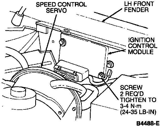 1. Position ignition control module to front fender and install retaining screws. Tighten to 3-4 Nm (24-35 in lb).