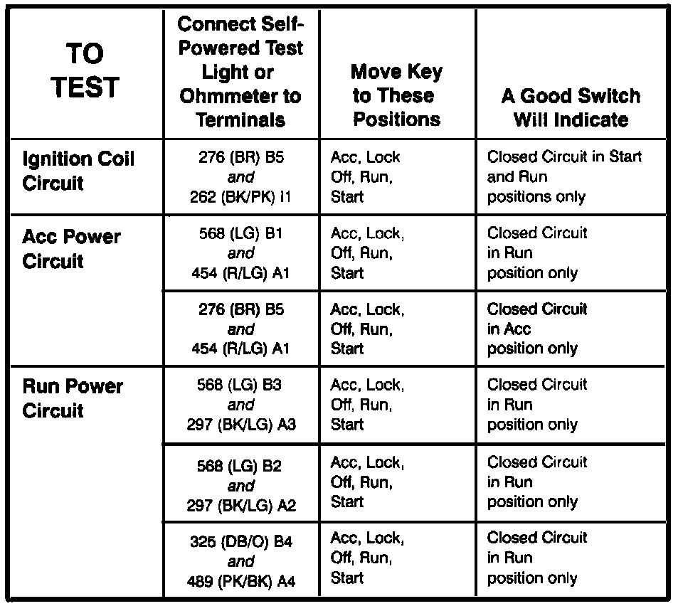 Ignition Switch - Component Testing Procedure (Part 2 Of 2):
