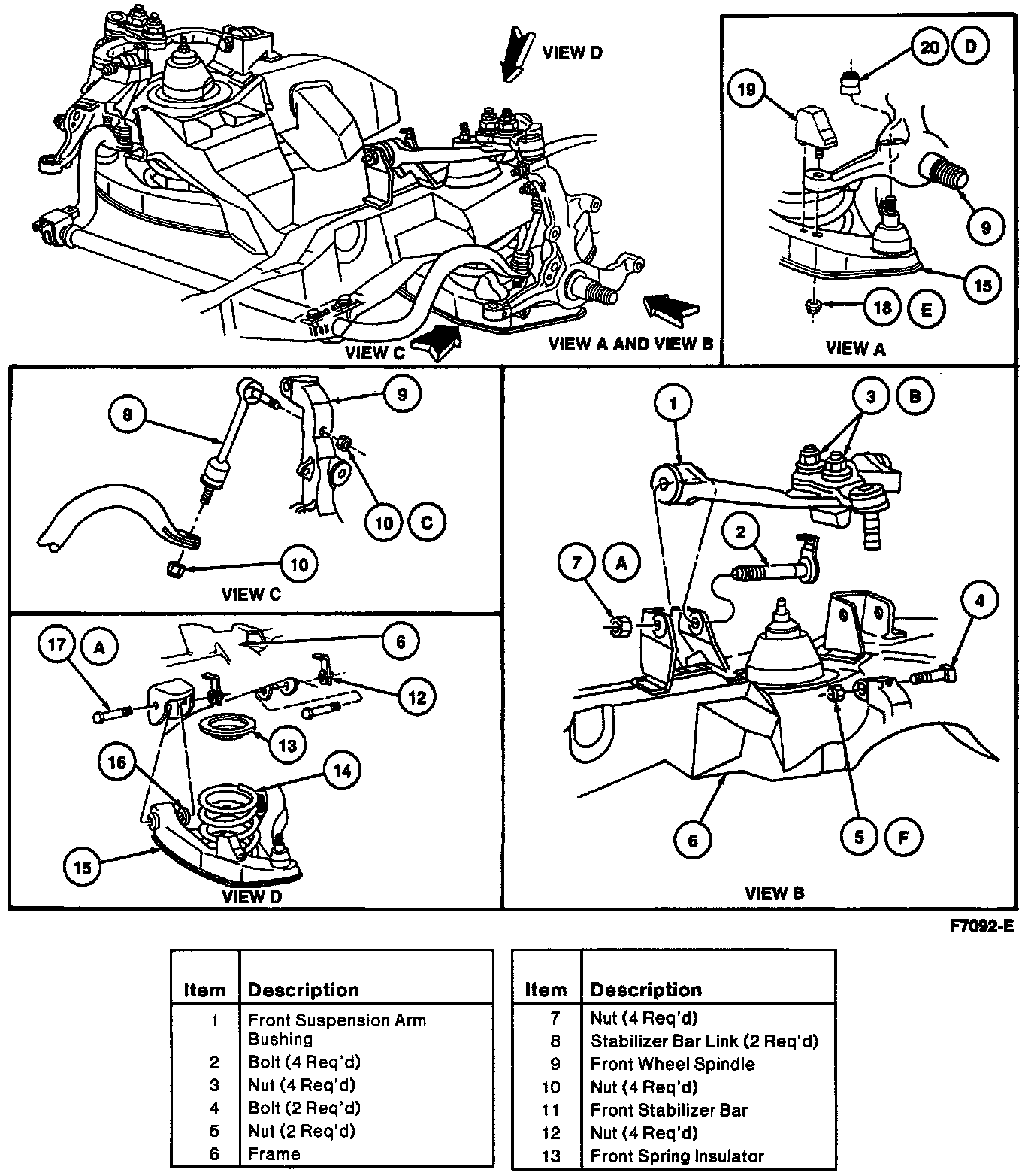 2. Position the front suspension upper arm to the frame bracket and install the two retaining bolts and nuts. Tighten to 136-190 N-m (101-140 lb-ft).