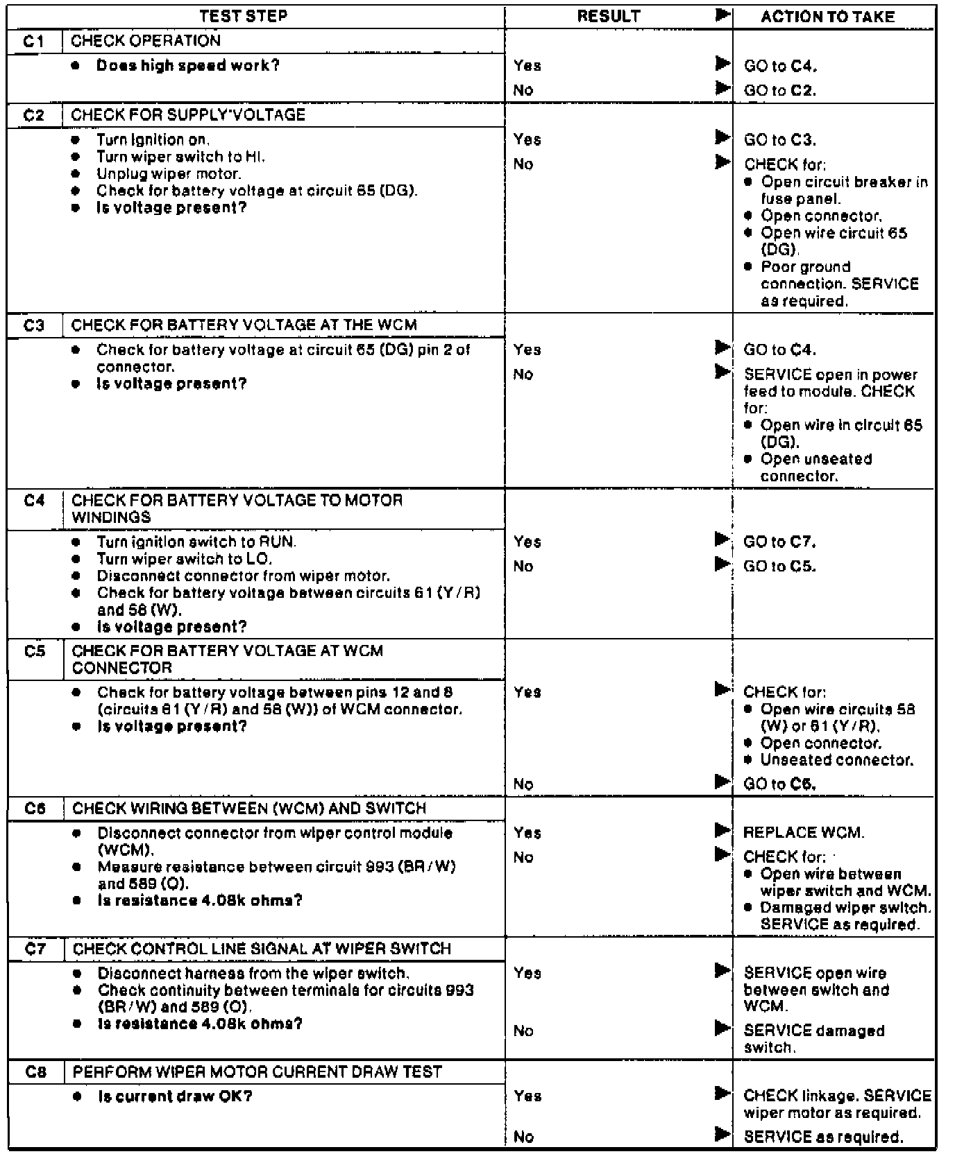 Test C: Windsheild Wipers Inoperative At Low Speed.: