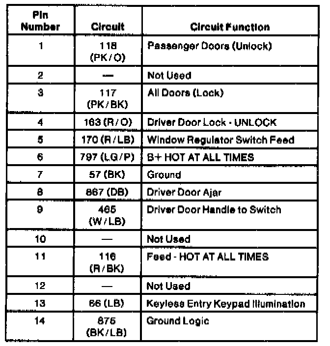 Driver Door Module Connector C3