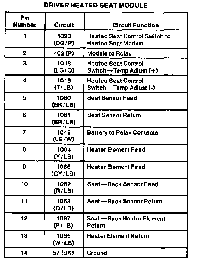Driver Heated Seat Module: