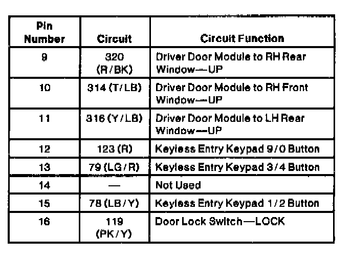 Driver Door Module Connector C2