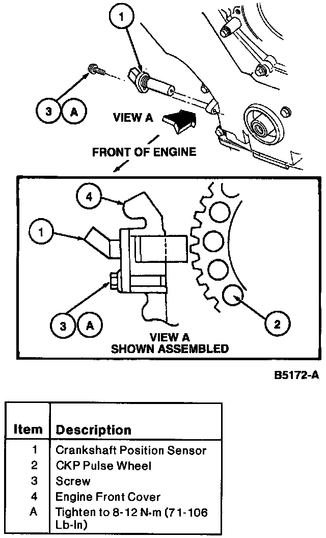 3. Position CKP sensor and install retaining screw. Tighten to 8-12 Nm (71-106 lb in).