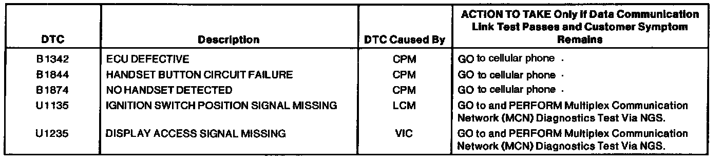 Mobile Telephone Transceiver Module Network DTC Chart