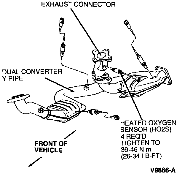 5. To install, reverse removal procedure. Tighten heated oxygen sensors to 36-46 Nm (26-34 lb ft).