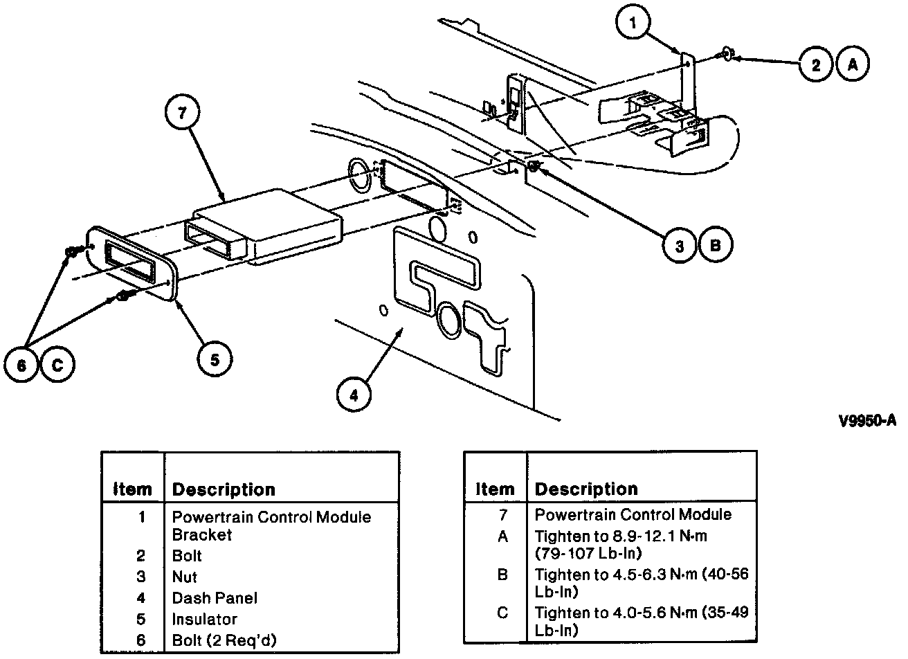 3. Loosen engine control sensor wiring to PCM connector retainer bolt.