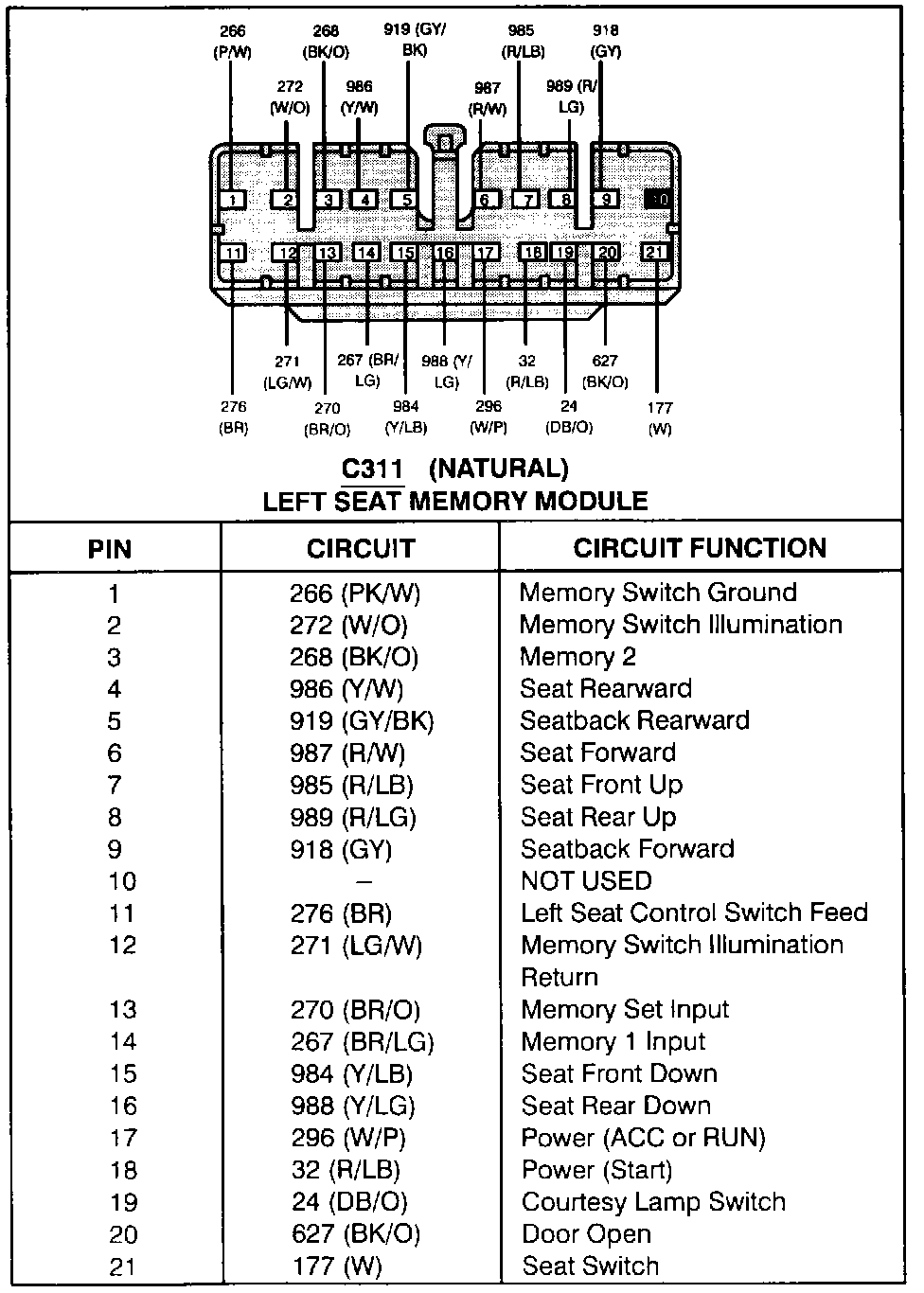 Left Seat Memory Module (C311):