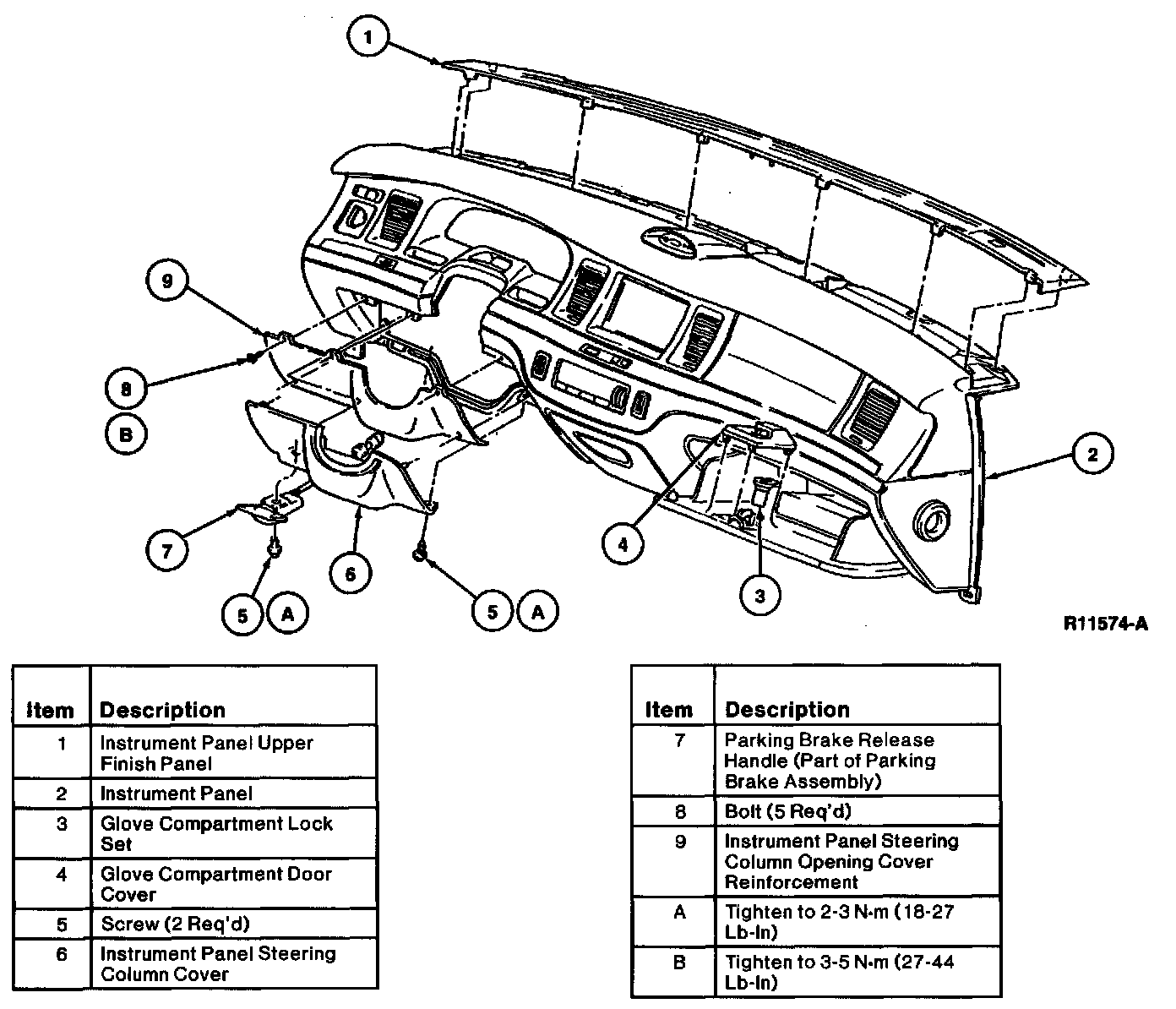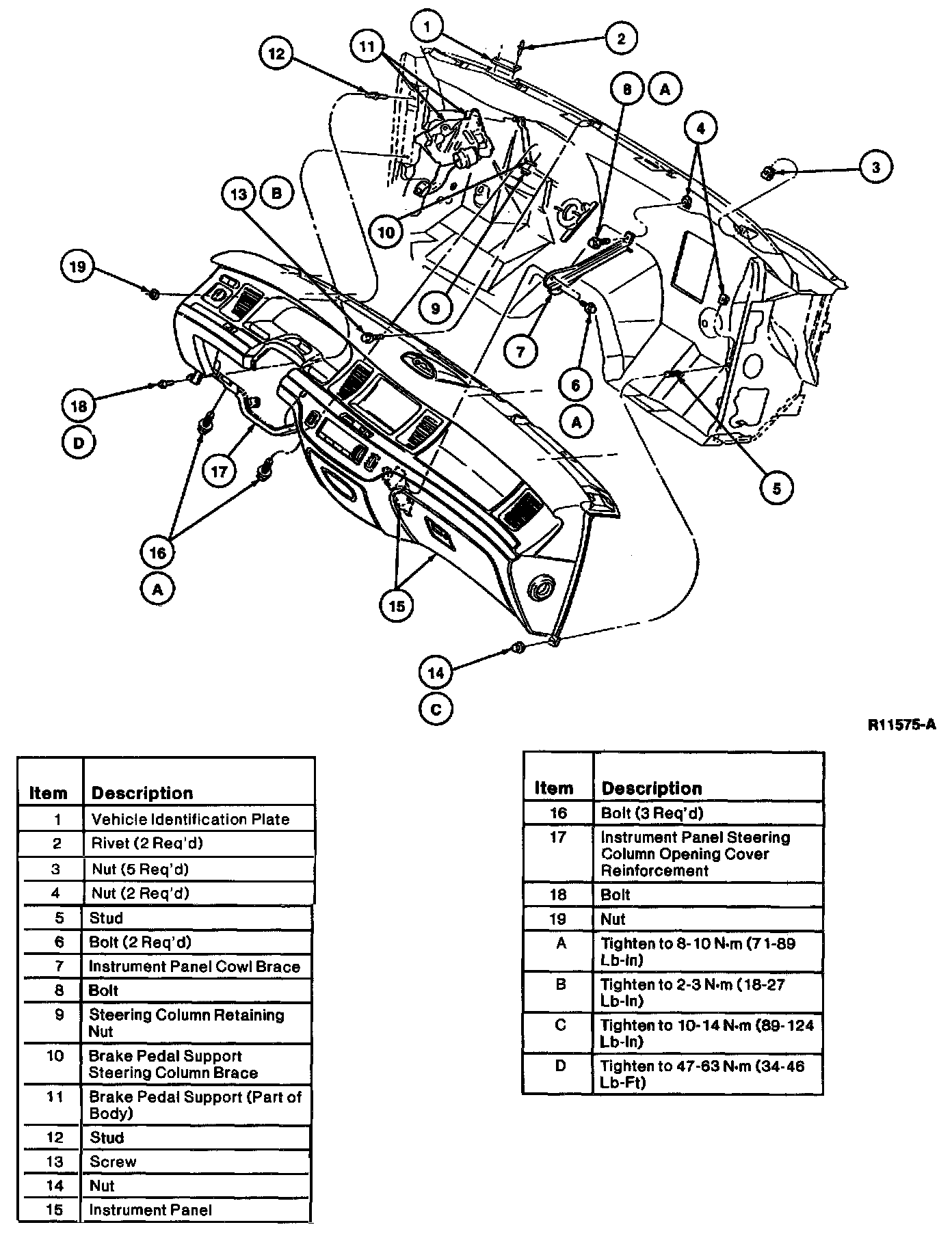 16. Install screws retaining instrument panel steering column opening cover reinforcement to instrument panel. Tighten to 8-10 Nm (71-89 lb-in).