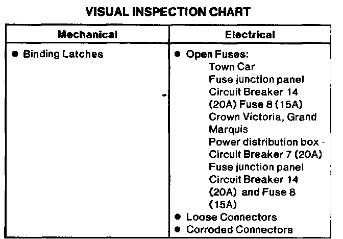 2. Inspect to determine if one of the mechanical or electrical concerns apply listed in the Visual Inspection Chart apply.