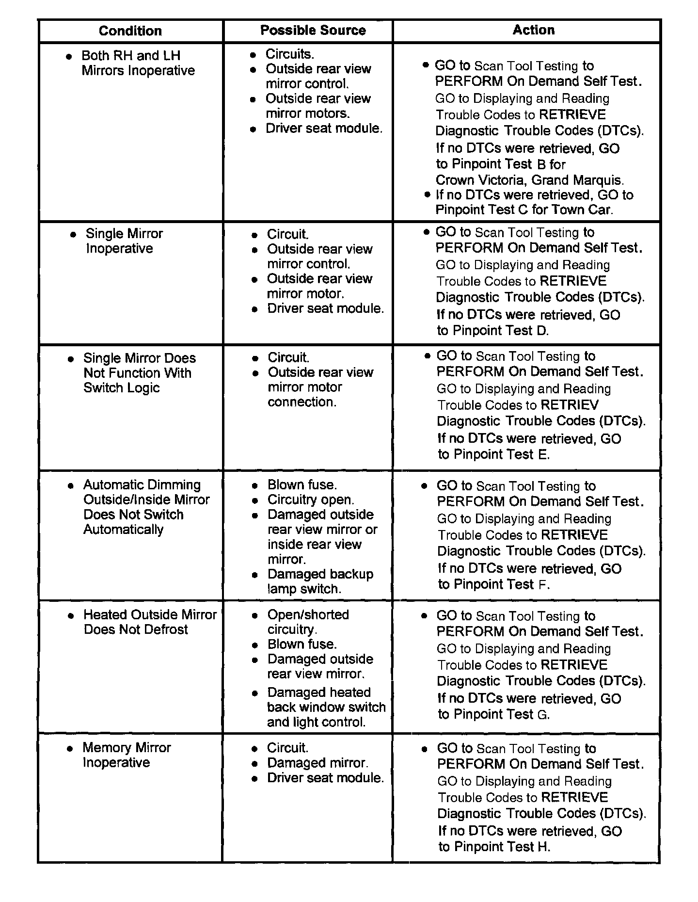 Symptom Chart - Mirrors, Rear View: