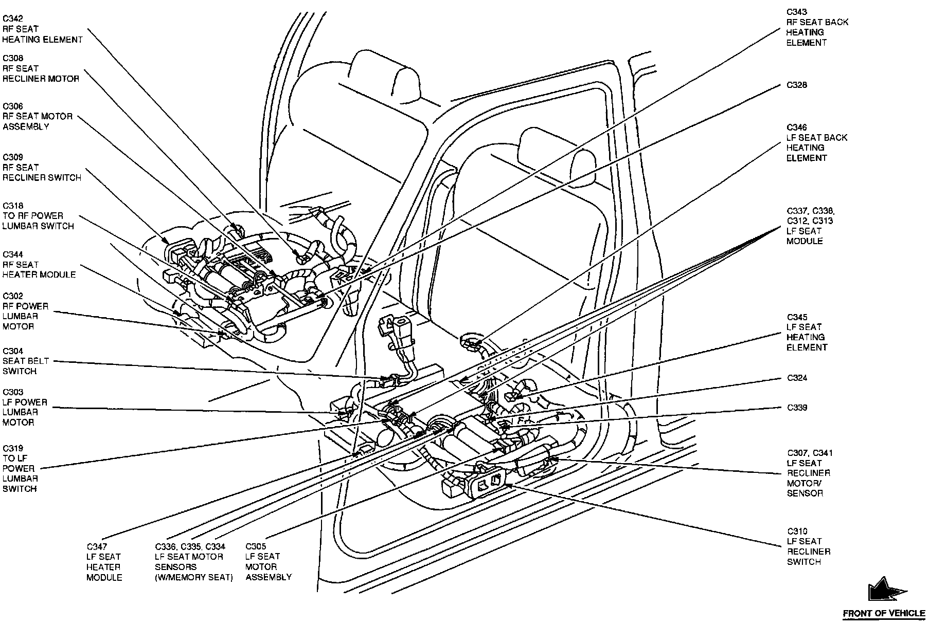 The Left Front Seat Heater Module is located under LF seat, "right side of the seat".