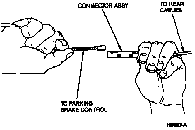 3. Install parking brake control-to-body side cowl and install three retaining bolts. remove shipping block or clip from parking brake control with pliers.
