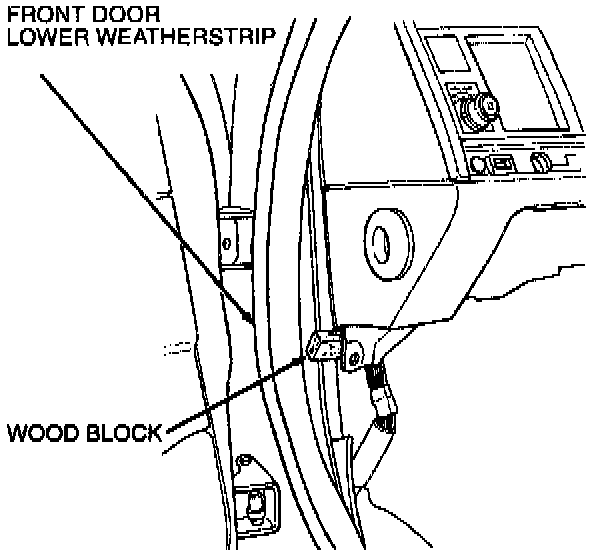 4. Remove wood block from instrument panel and install lower instrument panel retaining bolts.