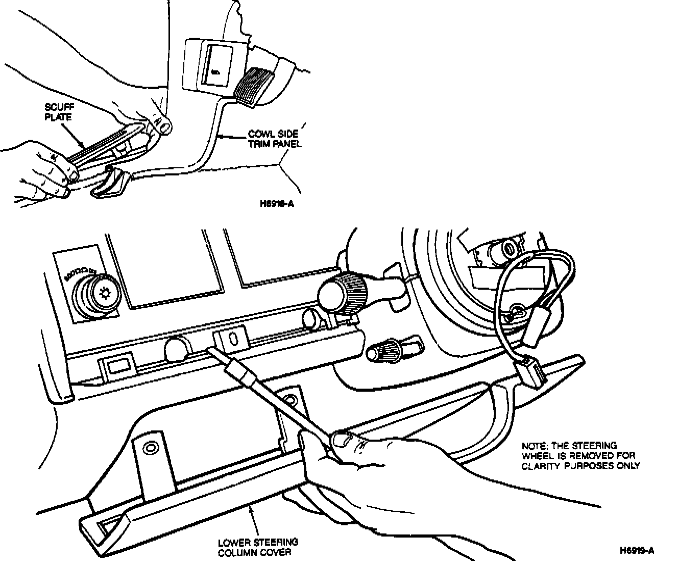 8. Remove instrument panel center moldings (RH and LH) to gain access to lower steering column cover.