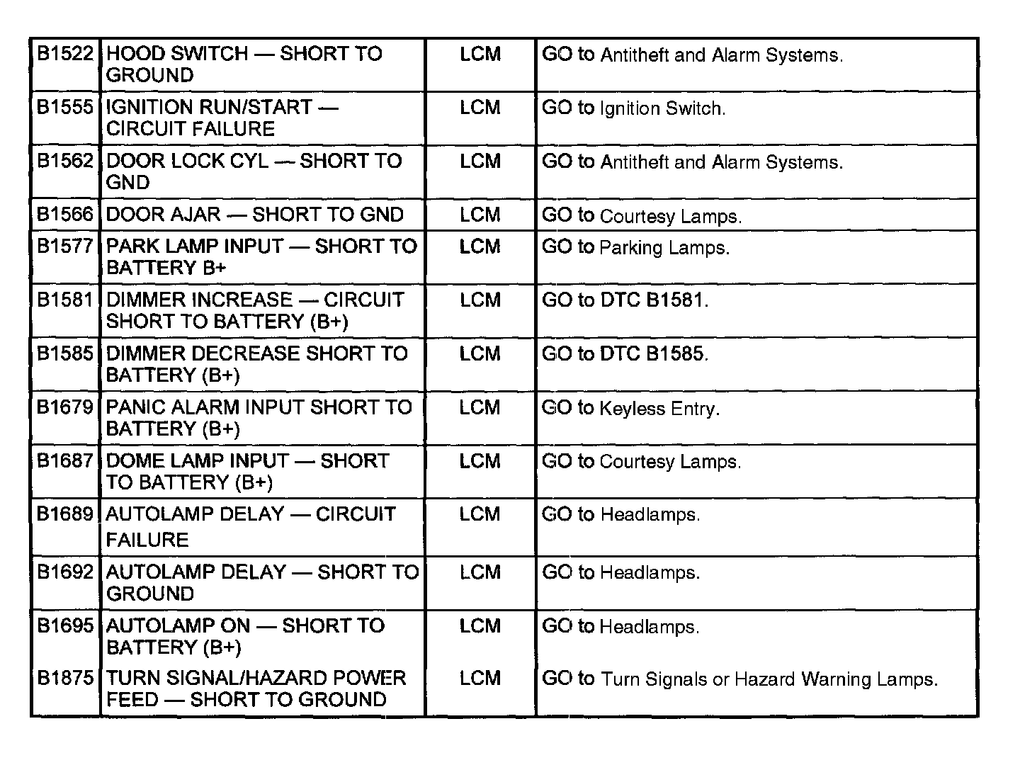 Lighting Control Module (LCM) DTC Index: