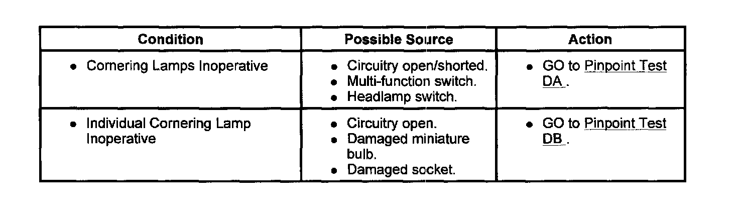 Cornering Lamps - Symptom Chart: