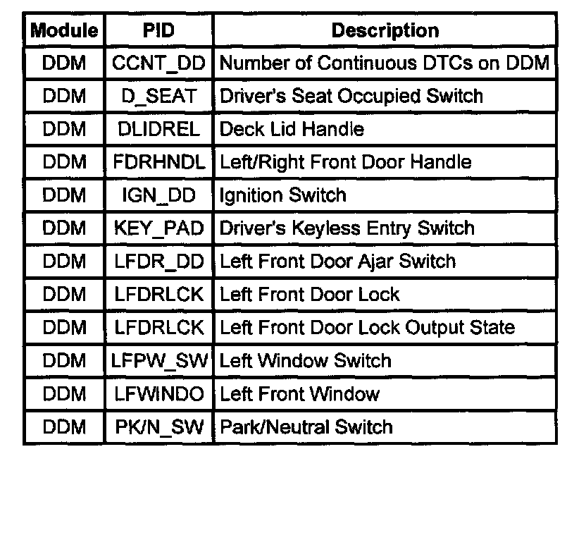 Driver Door Module (DDM) PID Chart: