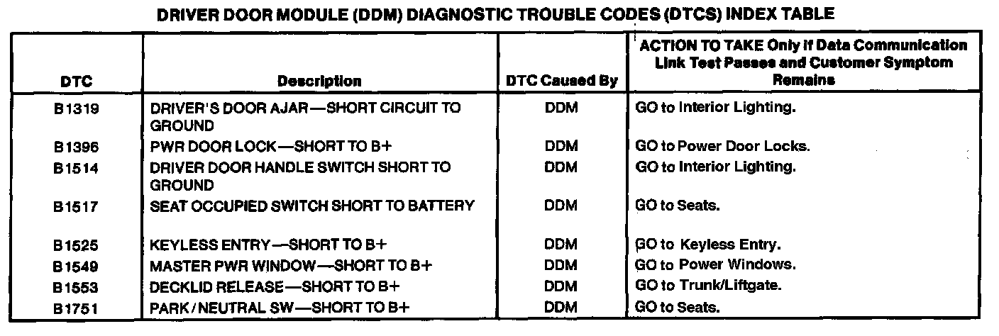 Driver Door Module DTC Chart: