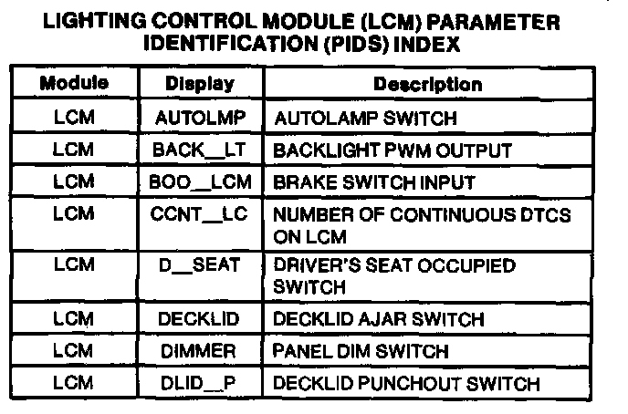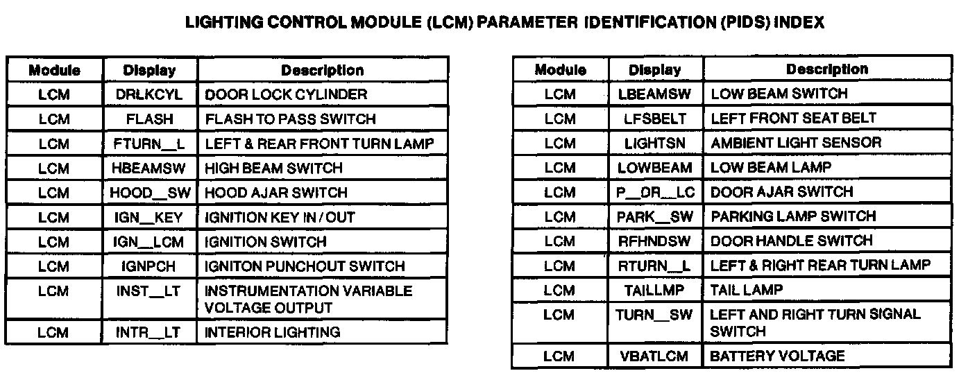 Lighting Control Module PID Chart Part 1 Of 2: