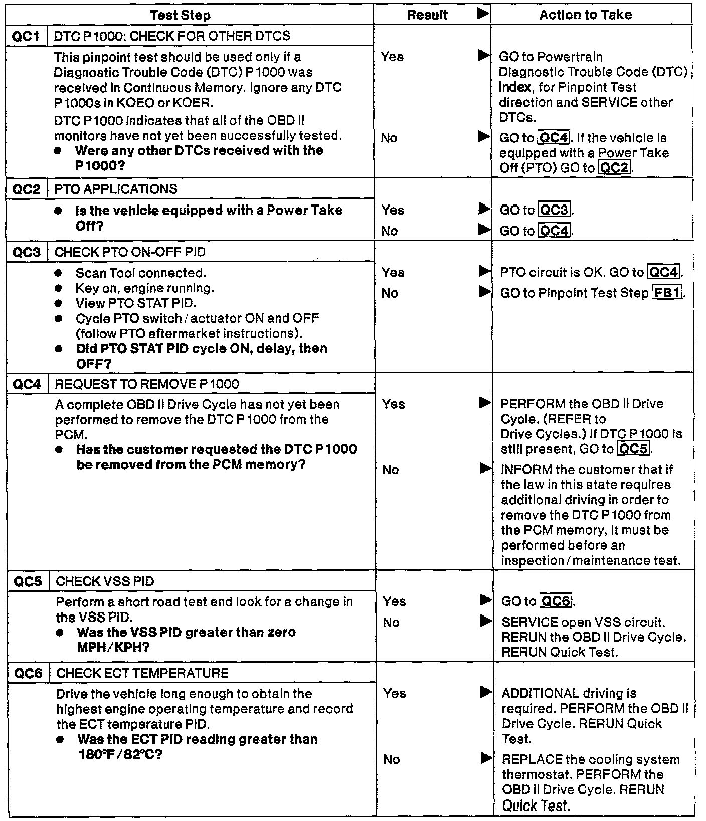 QC - OBD II Monitor Testing Not Complete - DTC P1000