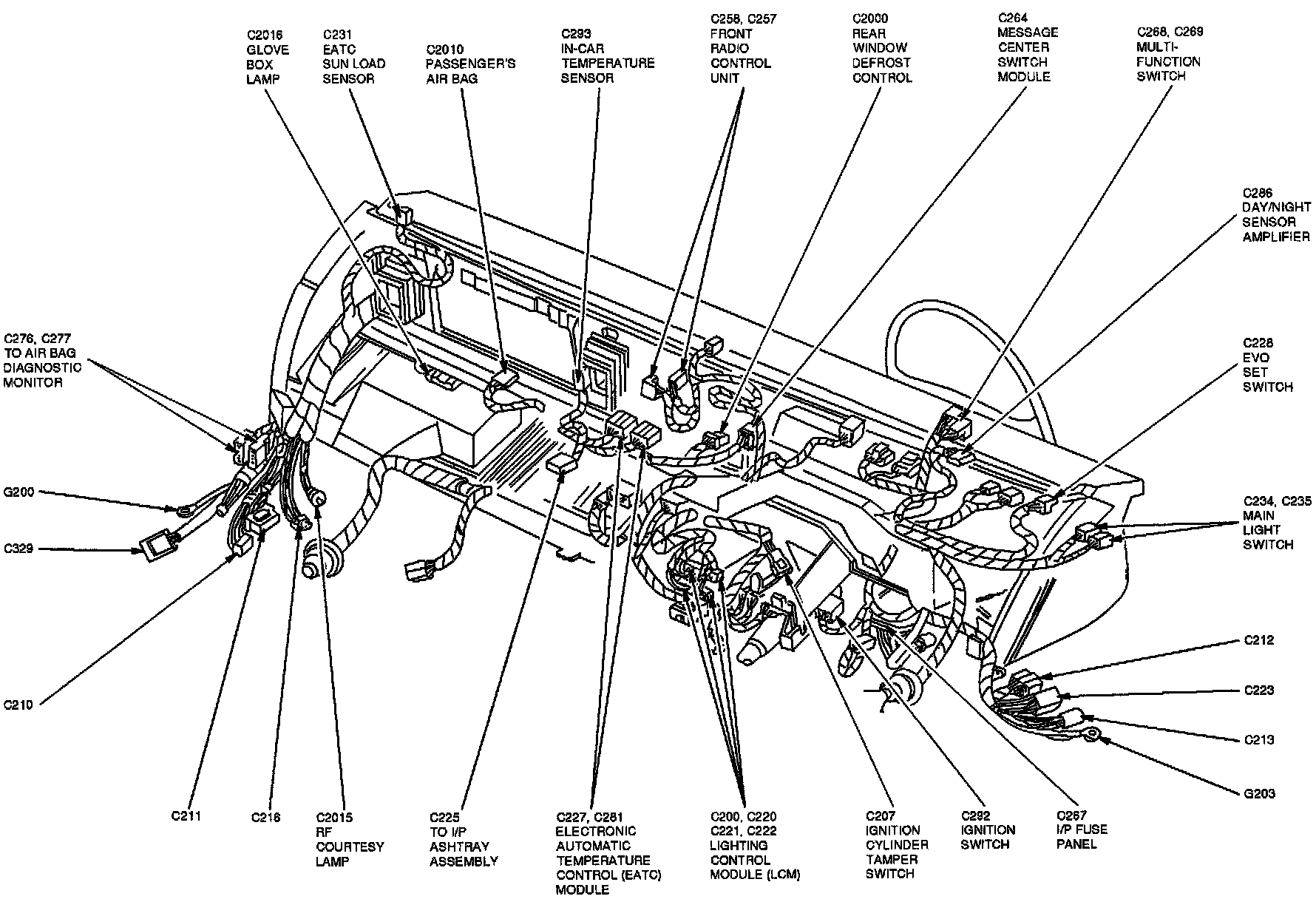 The Electronic Automatic Temperature Control Module is located at the center of the instrument panel.
