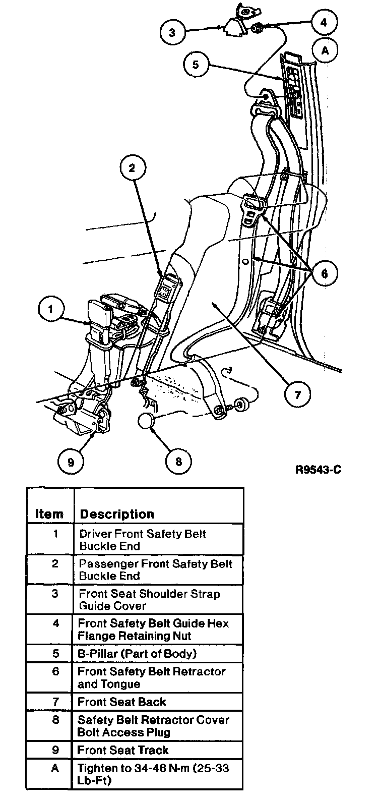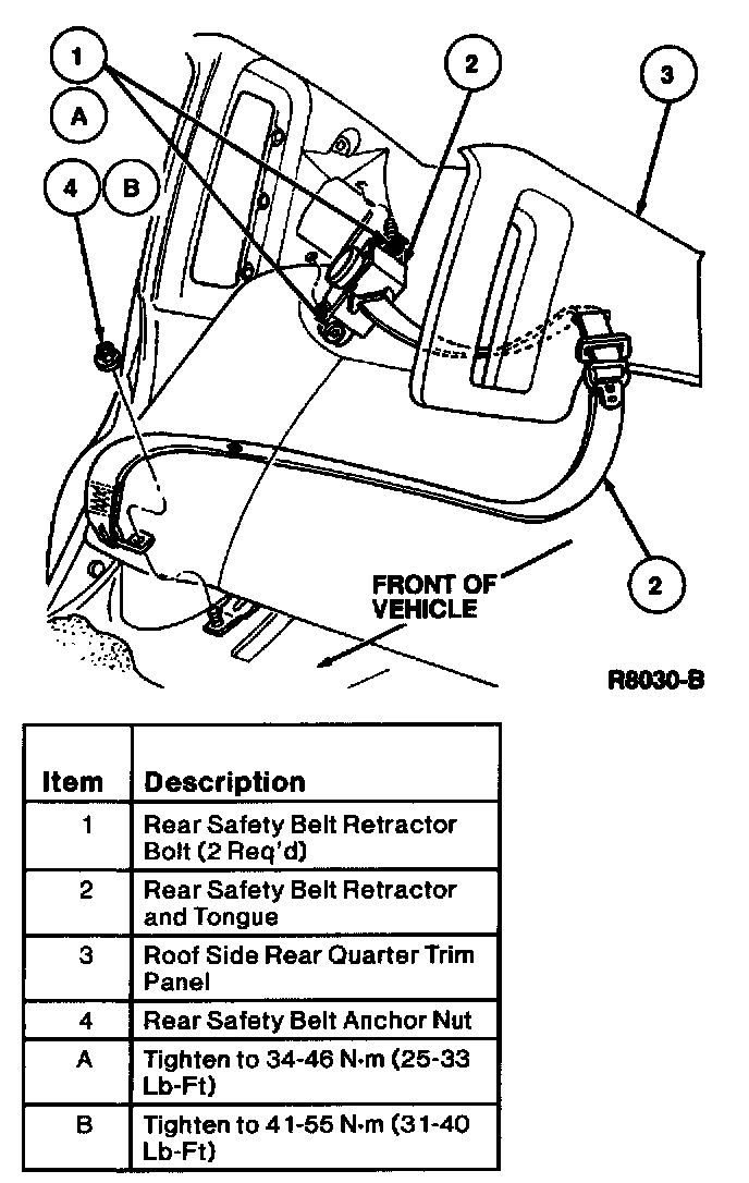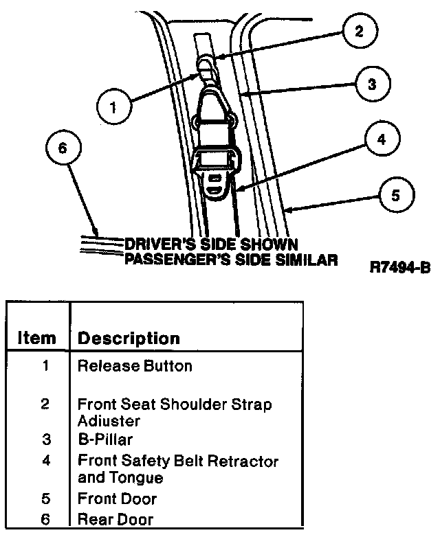 - The front seat lap/shoulder safety belt extends from a retractor located on vehicle structure underneath the B-pillar trim up to a front safety belt guide located on the B-pillar post.