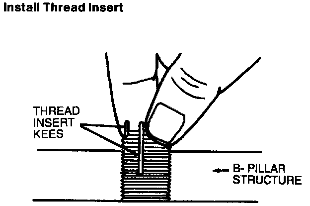 1. With the B-pillar interior trim panel removed, drill out the damaged threads in the upper B-pillar structure using a 1/2-inch drill.
