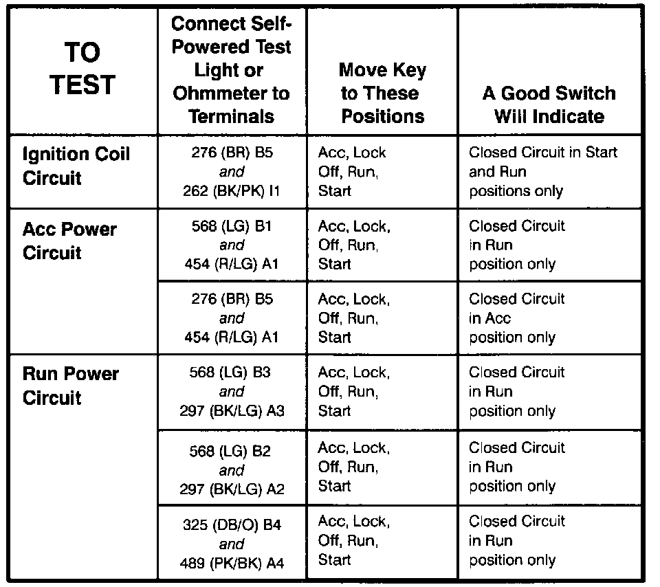 Ignition Switch: Testing and Inspection