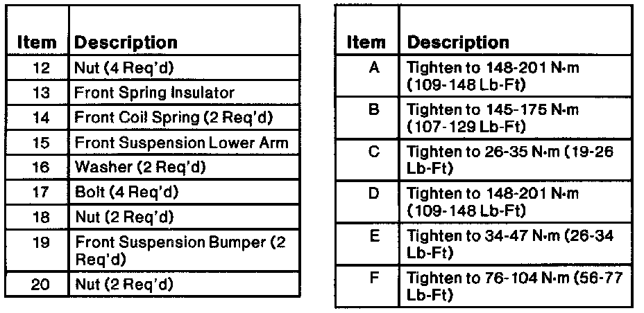 10. With the vehicle supported on the wheels and tires at normal curb height, tighten the front suspension lower arm-to-crossmember bolts and nuts to 136-190 N-m (101-140 lb-ft).