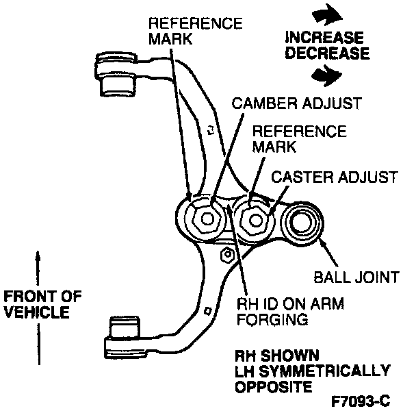 6. Check caster, camber, and toe. Adjust as required.