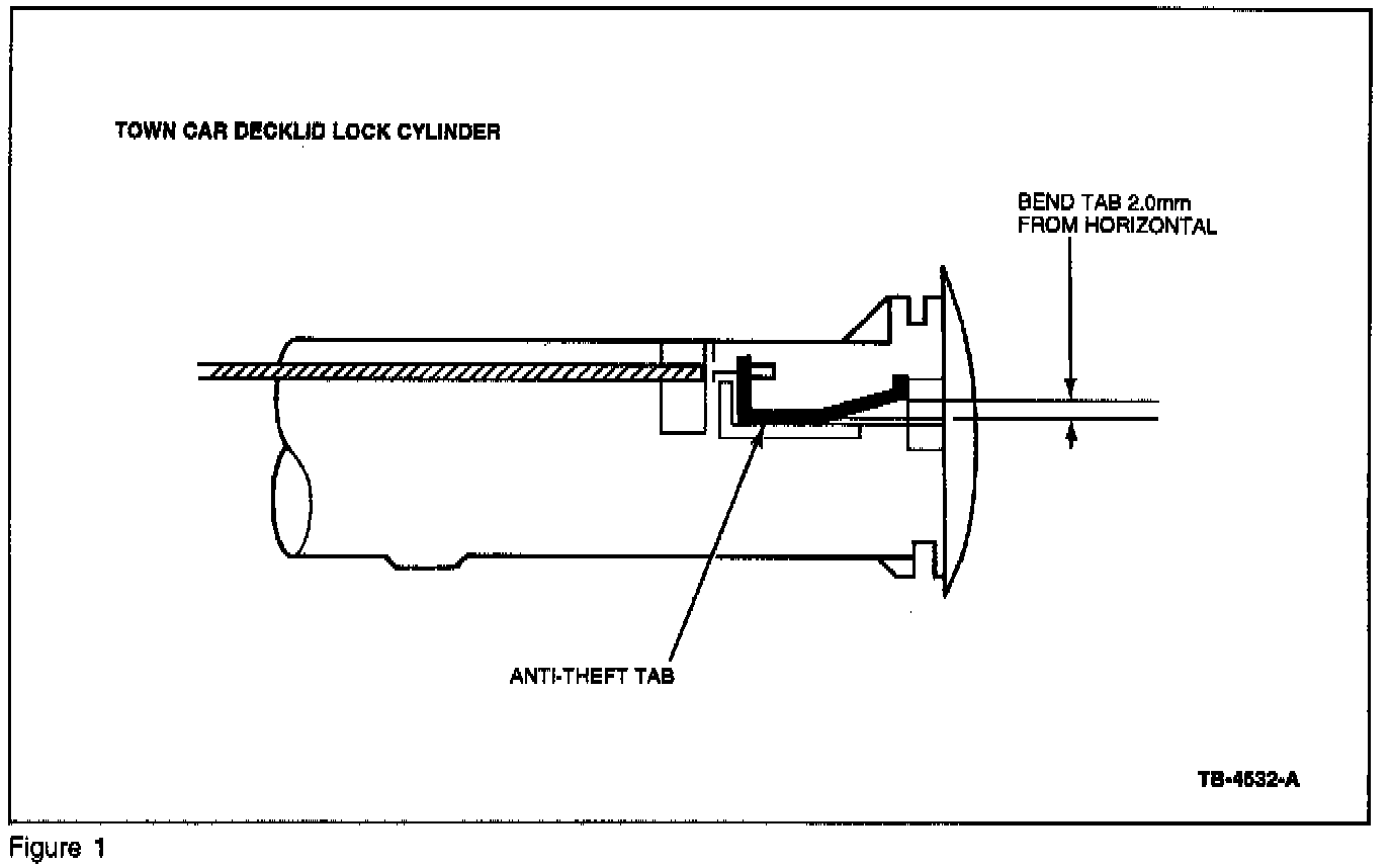2. Using pliers, bend the anti-theft lever so that it engages the decklid sheet metal. Refer to Figure 1.