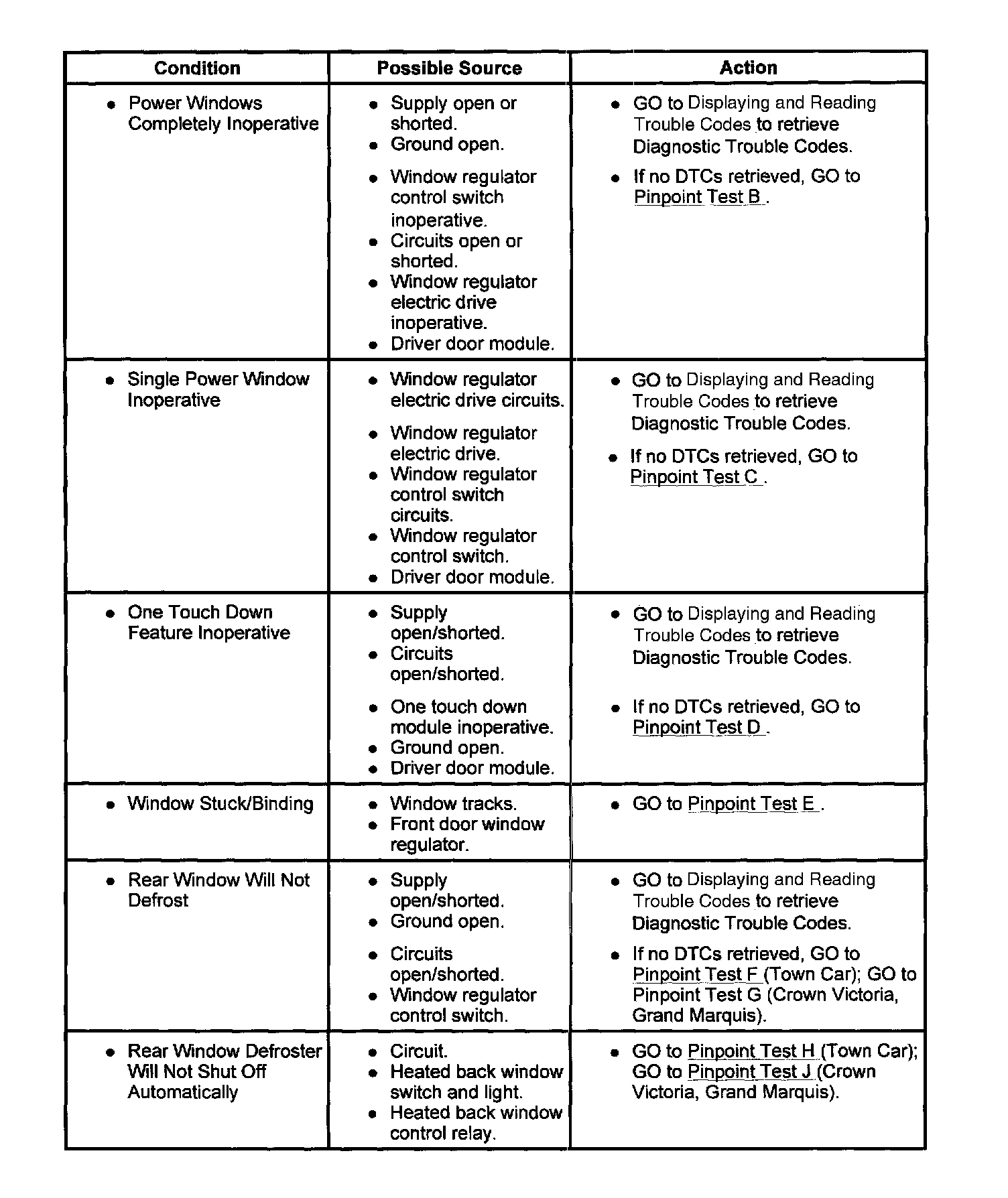 Power Windows And Heated Back Window - Symptom Chart: