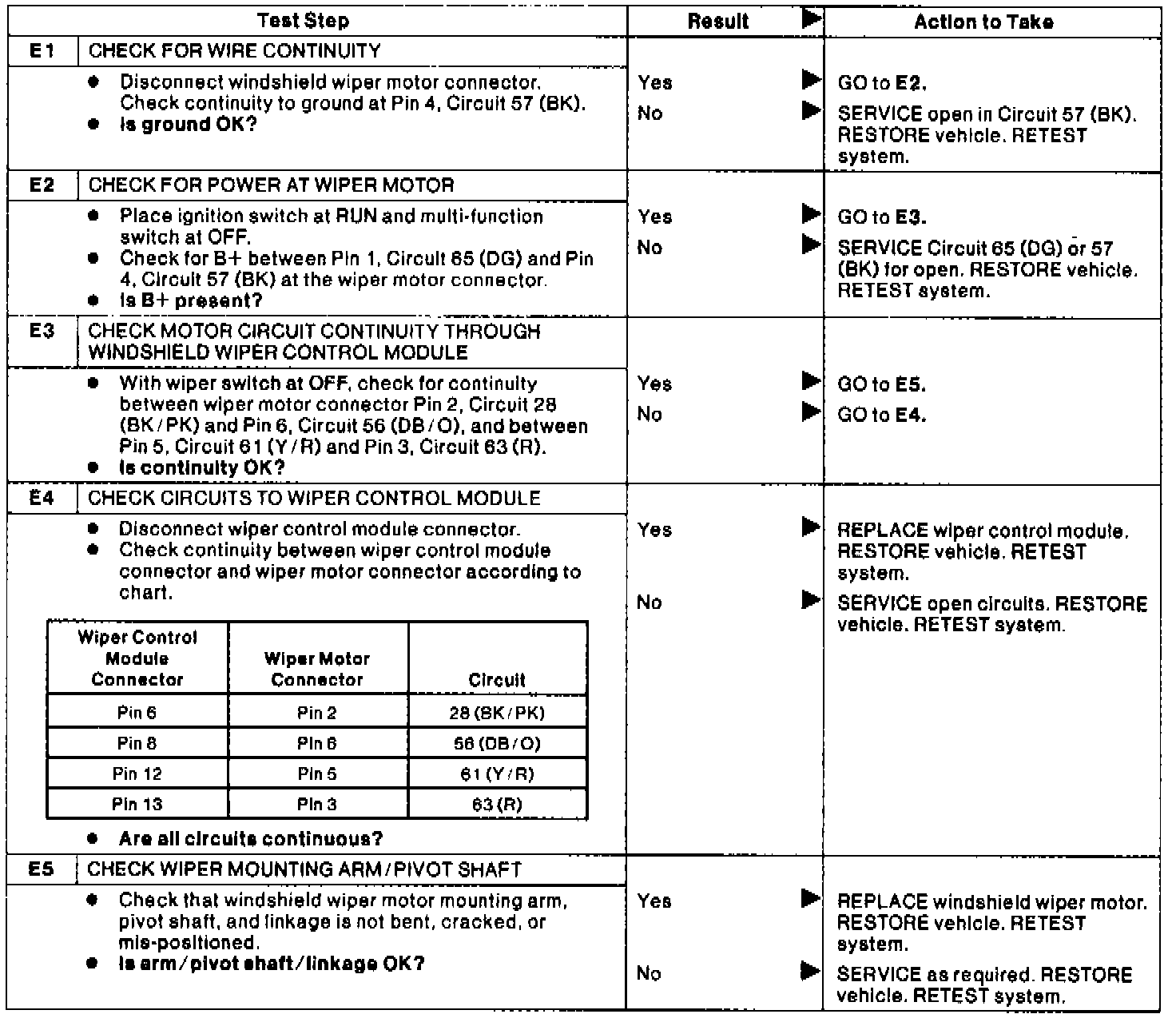 Test E: Wipers Will Not Park At Proper Position.: