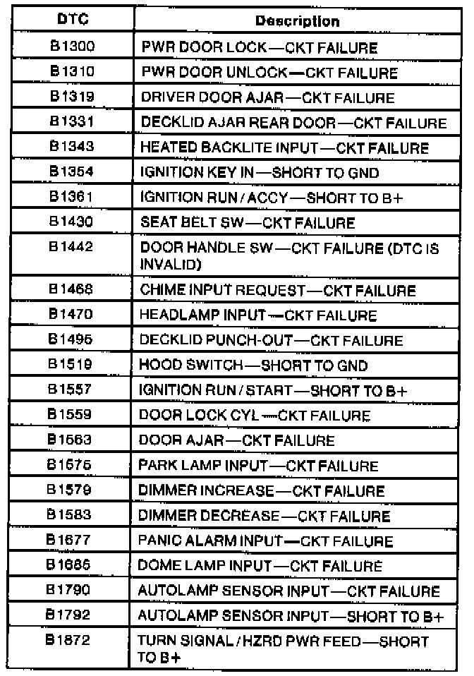 Lighting Control Module (LCM) Wiggle Test DTC Index