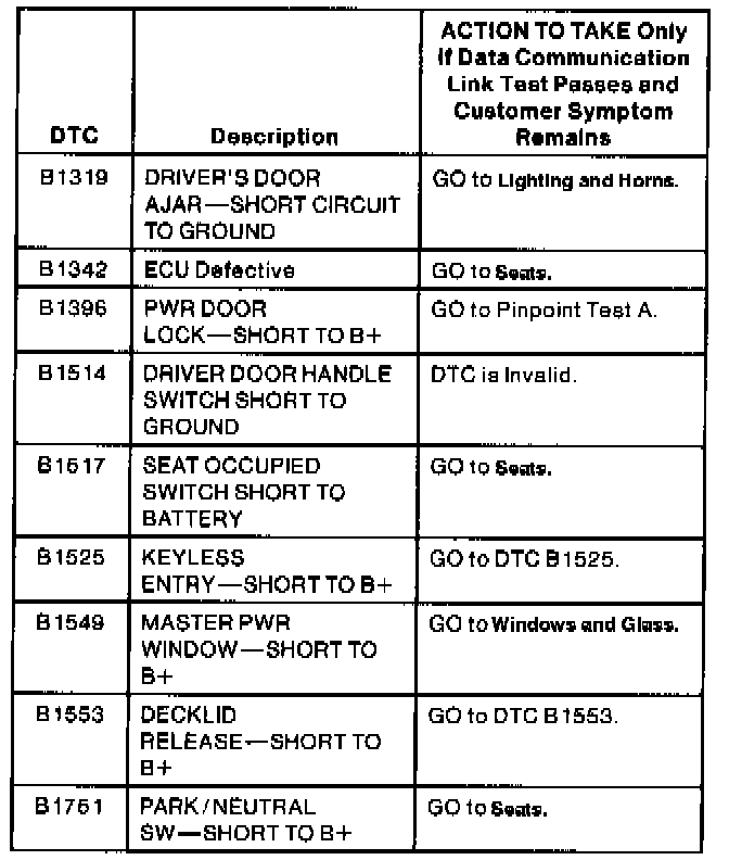 Driver Door Module (DDM) Diagnostic Trouble Code (DTC) Index
